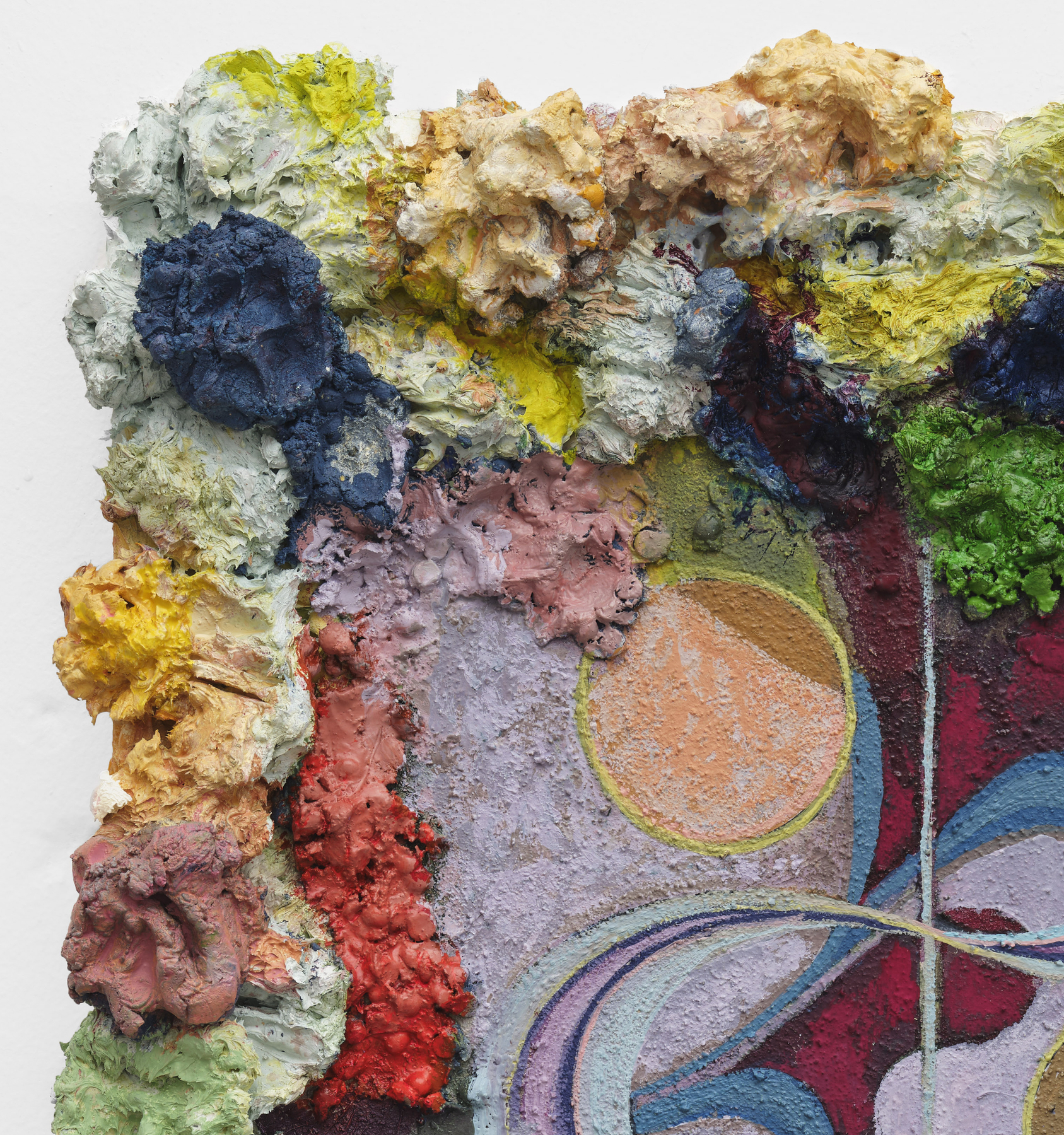 Described by art critic John Yau as “one of the great painters of his generation”, Phillip Allen  has refused to settle into any one mode or style, choosing instead to continually push the possibilities of the picture plane resulting in paintings that are sculptural, optical and joyously excessive. Dense accretions of acrylic and oil paint form thick, encrusted borders that frame finely worked interior fields. Within these interiors, rhythmic geometries, spiralling motifs and kaleidoscopic colour sequences unfold with a sense of buoyant improvisation.